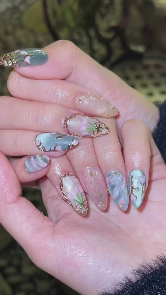 Beautiful hand crafted nails, my fourth purchase so far and i absolutely love the detail of all of them. They are durable and exactly what was expected. 10/10 product would recommend any style!