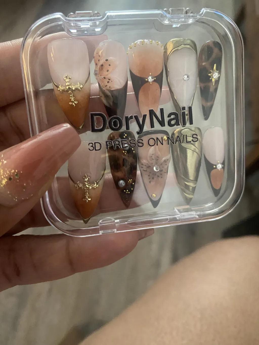 The nails are absolutely stunning! They look like a $200 set from the salon. I will NEVER go to a salon again. Also, I had to have a custom size and she worked directly with me to get the sizing perfect! Excellent customer service and quality nails. I will be purchasing additional sets!
