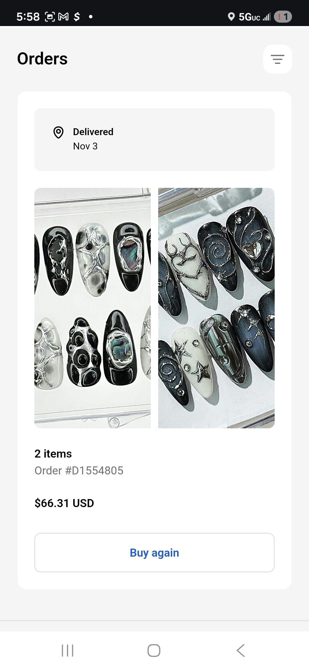 Nails were wrong sizing. Nails originally were a bit small but when I got through to customer service, they were super helpful about getting me my correct size. Quality was great and nails were beautifully done. Waiting on my order with the exact measurements now, super excited!