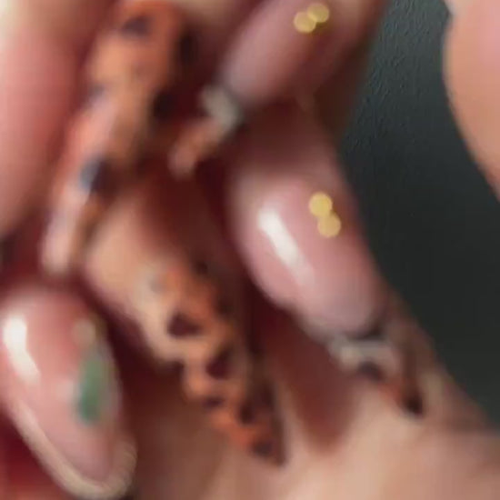 Leopard Fall Press On Nails | Animal Print Nail Art | Glam Rhinestone & Chain Nails | Handmade Long Stiletto Nails |Autumn Press Ons|JB175HC