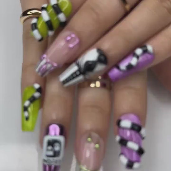 Spooky Stripes Press On Nails | Beetle-Inspired Gothic Nail Art | Handmade Creepy Cute Nails | Halloween Party Nail Art |