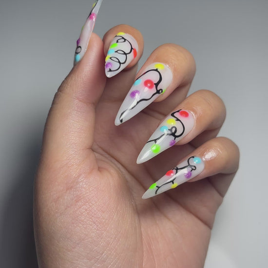 DoryNail Christmas Light String Press On Nails | Colorful Holiday Nail Art | Festive Rainbow Bulb Design | Clear Glossy Nails | Handmade Christmas Set