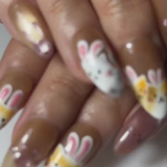 Kawaii Bunny & Strawberry Press-On Nails | Handmade Bunny Nail Art | Cute Girly Nails | 3D Kawaii Nails | Cottagecore Nail Art | JB689H