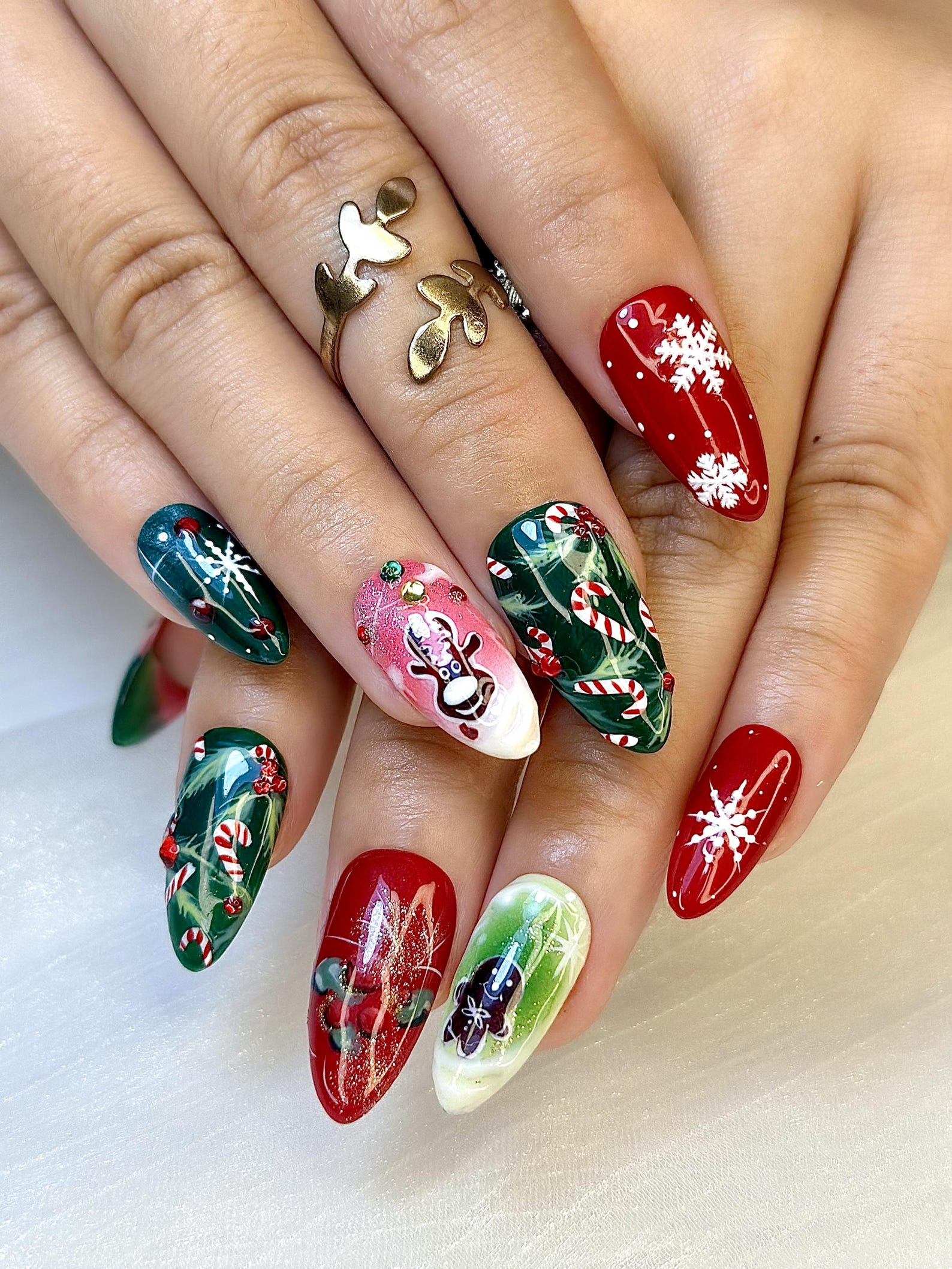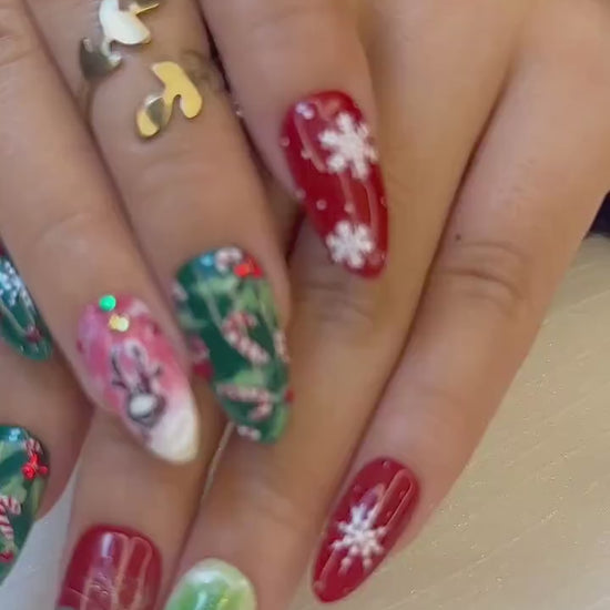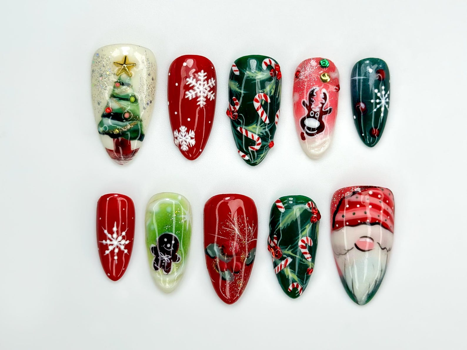 Press On Nails For Christmas| Red Green Christmas Nail Art | Candy Cane & Tree Nails | Festive Holiday Press Ons |JB217ET