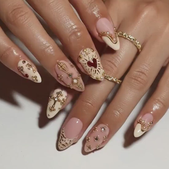 Nail Tabs for Press On Nails – Golden Heart Baroque Press On Nails | Valentine Nails | Ivory Blush French Tips
