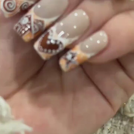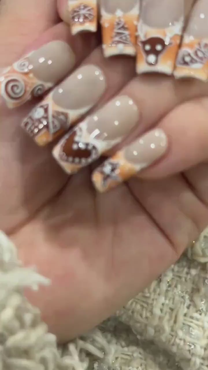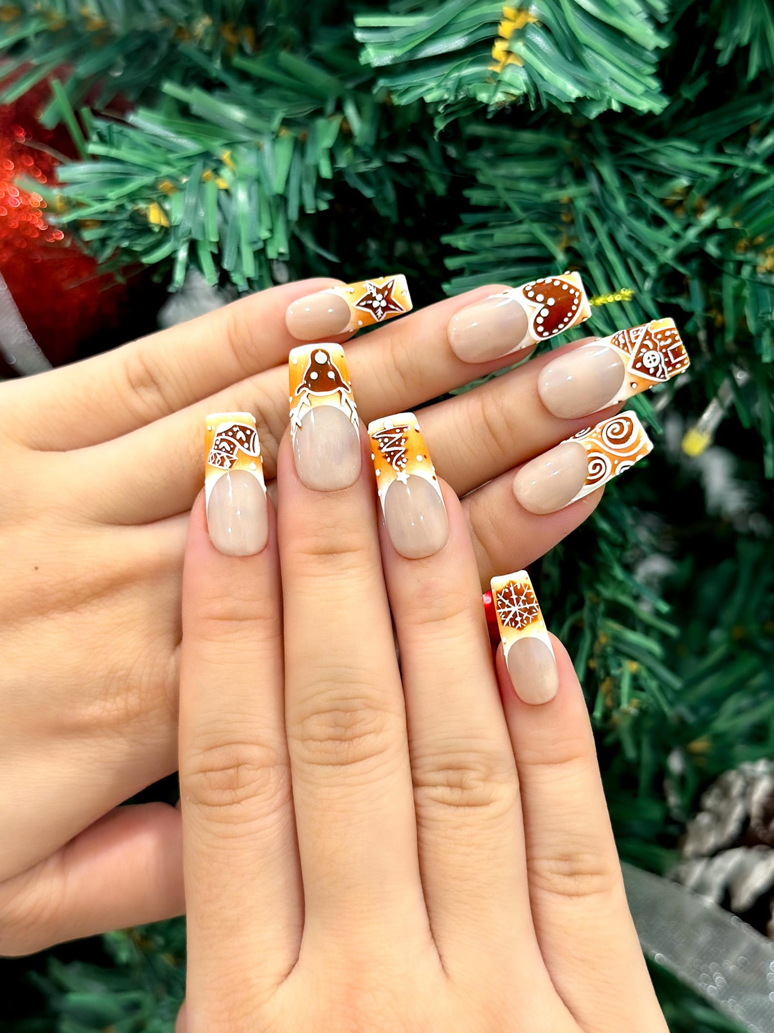 Gingerbread Cookie Christmas Press On Nails | Holiday Cookie Art Nails | Cute Christmas Gingerbread Set | Brown White Festive Tips | DC933EC