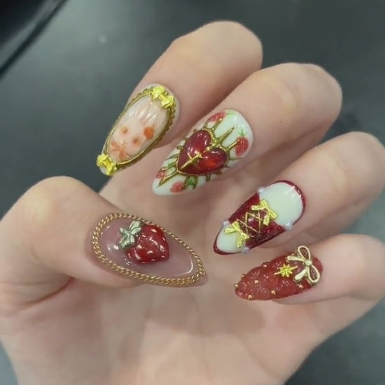 Gothic Strawberry Press On Nails | Red Heart Cross Nail Art | Luxury Handmade Press Ons | Statement Nails | HB995GC