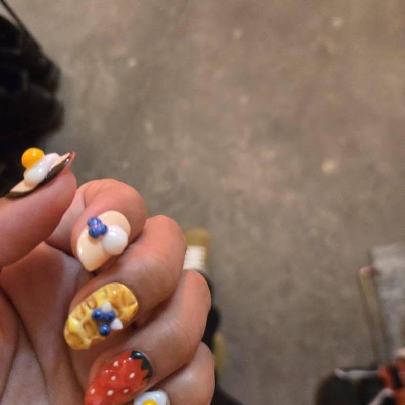 Kawaii Brunch Press On Nails | 3D Food Nail Art | Strawberry Waffle Press Ons | Funny Food Fake nails | Egg & Strawberry Nails | HB955YC