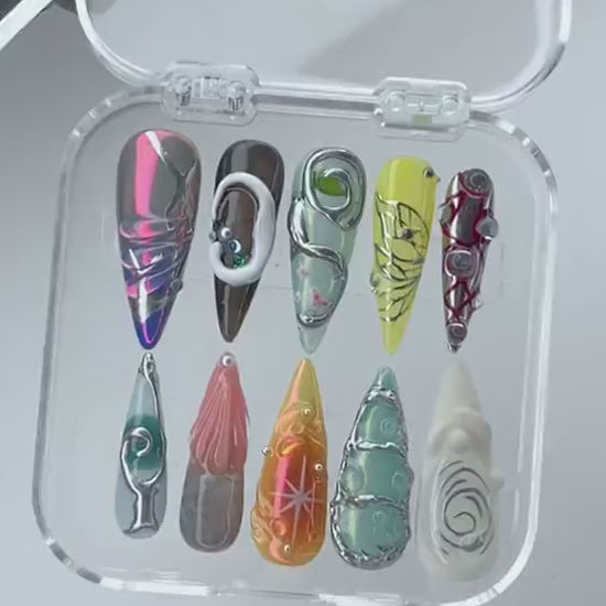 Vibrant 3D Fashion Press On Nails | Bold 3D Art Nail Polish | Unique Sculptural Nails | Gallery-Ready Press Ons | Standout Acrylic | HB483YC